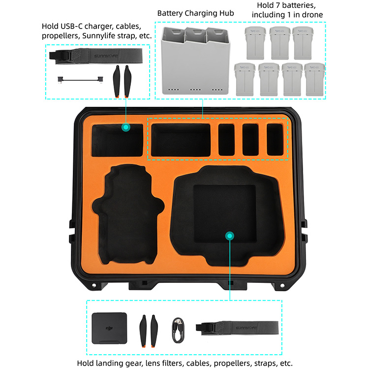 l It holds seven batteries, both for the DJI RC2 and RC-N2