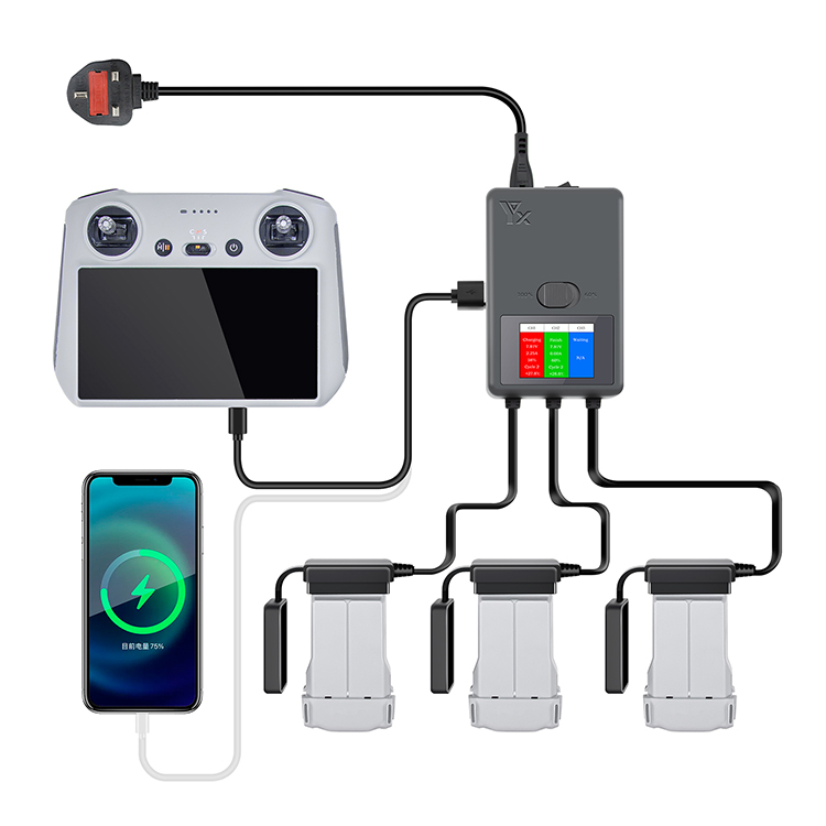 Drone Charger Three Way Charger with LCD Display Drone Accessories for DJI Mini 3 / Mini 3 Pro