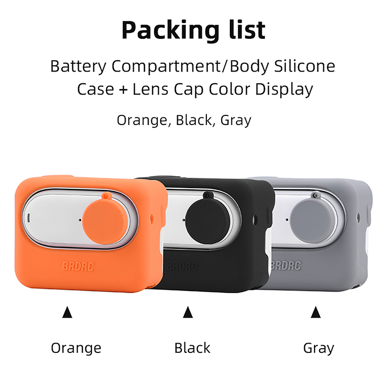 l Types (Optional): Battery Compartment Silicone Case + Lens Cap Gray, Battery Compartment Silicone Case + Lens Cap Orange, Battery Compartment Silicone Case + Lens Cap Black, Body Silicone Case + Lens Cap Gray, Body Silicone Case + Lens Cap Orange, Body Silicone Case + Lens Cap Black