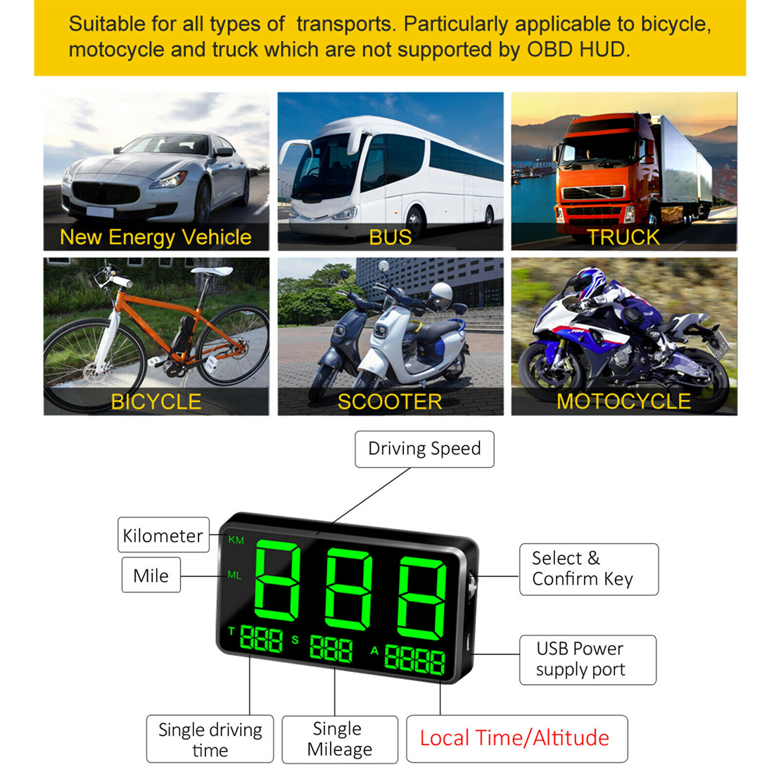 6) Over-speed Alarm setting, Altitude display, Display MPH or KM/h.
