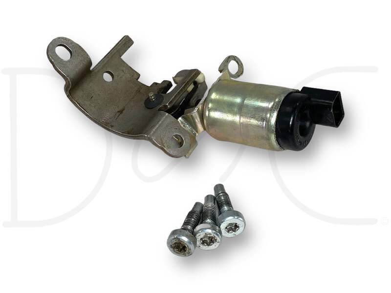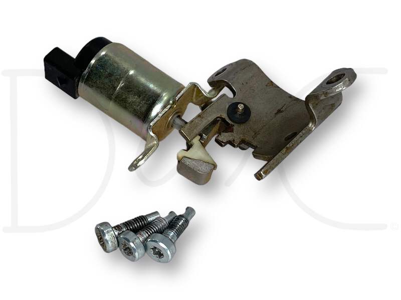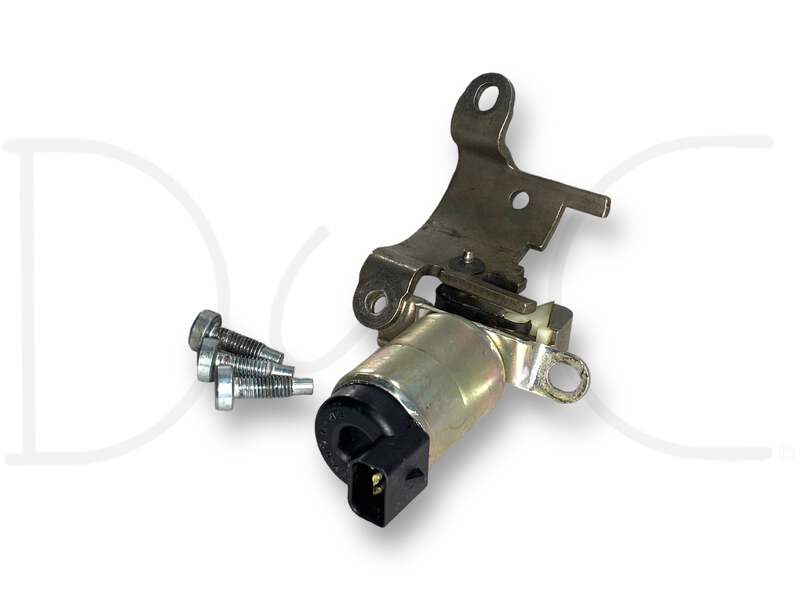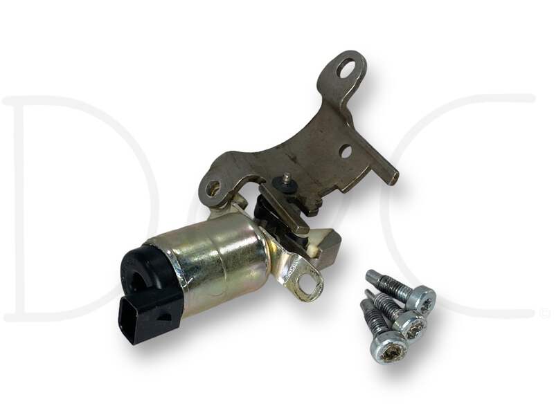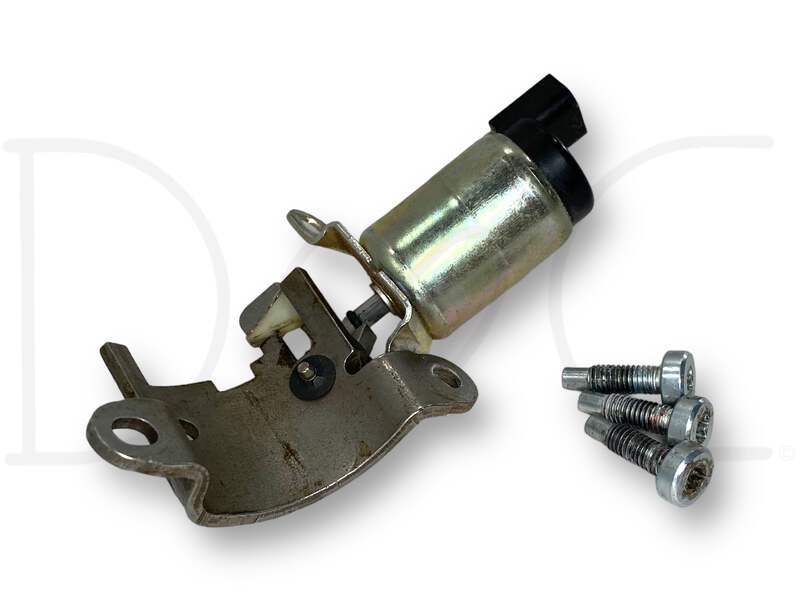Description: Ford Super Duty automatic transmission shift interlock solenoid with detent bracket plate and mounting screws OE