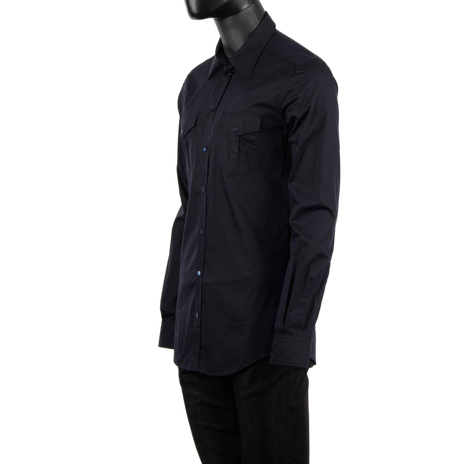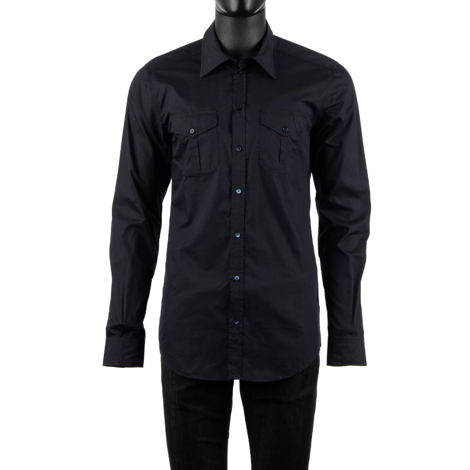- Silk and cotton shirt SICILIA with pockets in dark blue by DOLCE & GABBANA