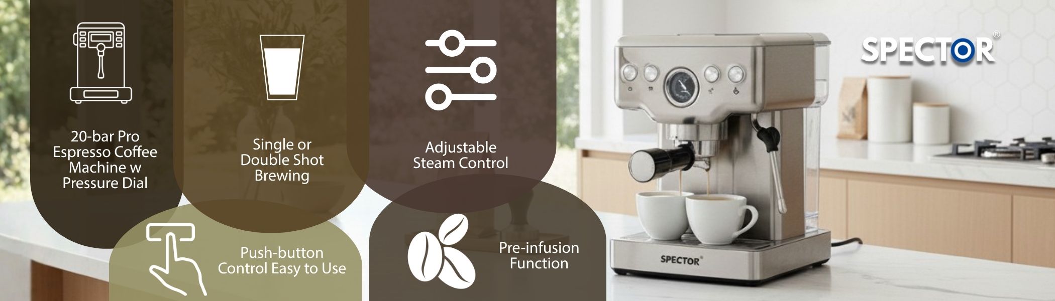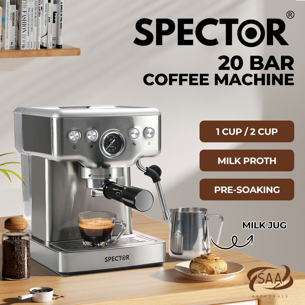 Spector Coffee Machine Espresso 20 Bar Cappuccino Maker Frother LCD Pre-soaking
