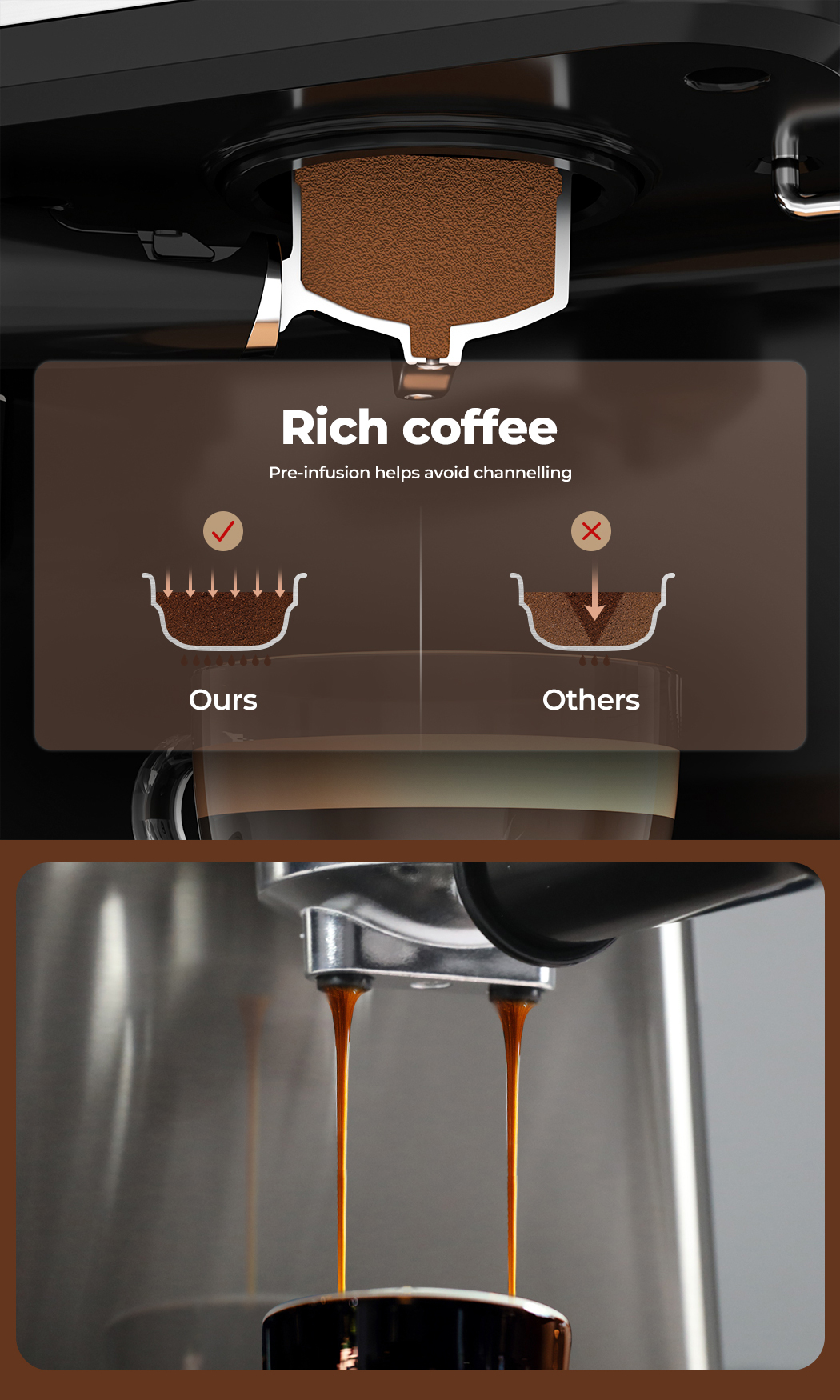 - Pre-Infusion Function: Gently soaks grounds to prevent channelling and enhance taste.
