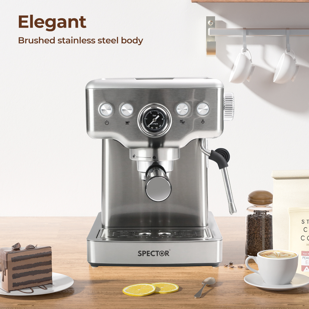 For those who appreciate a café-style brew at home, this coffee maker machine from Spector delivers precision, power, and taste in every cup. Whether you're after a bold shot from an espresso coffee machine or a creamy cappuccino maker, this unit combines elegant design with professional-grade performance. With a 20-bar pressure system and pre-infusion technology, it enhances flavor extraction while minimizing channelling—an essential for true espresso maker lovers.