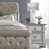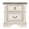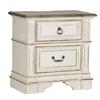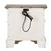 This 2 drawer night stand is the perfect way to accent your room with an effortless blend of European Traditional design. Weathered brown whitewash top and antique white finish, combined with heavy chipping, creates a truly unique look. Enjoy the convenience of having a built-in charging station in the back of the night stand, featuring two USB ports and two outlets. The post design with fluted top accents and chamfered edges completes this traditional piece.
