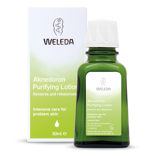 Weleda Aknedoron Purifying Lotion is a two-step process for spot-prone skin. Mildly astringent intensive spot treatment, helps regulate skin and soothe away problem blemishes. An intensive spot treatment to use alongside aknedoron cleansing lotion. A potent mix of natural plant extracts includes essential oils of sage, thyme and lavender to rebalance the skin, mildly astringent witch-hazel and mineral sulphur to calm irritation and stimulate healing blood flow. Best used at night, on problem areas anywhere on the body and targeted at blemishes and eruptions. Suitable for vegans.