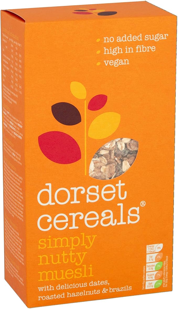 Wholegrain OAT Flakes, Chopped Dates (19%), BARLEY Flakes, Wholegrain Toasted WHEAT Flakes, Wholegrain WHEAT Flakes, Nuts [Chopped Roasted HAZELNUTS (2.5%), Whole ALMONDS (2.5%), Chopped BRAZIL NUTS (1.5%)], Sunflower Seeds (2.5%)