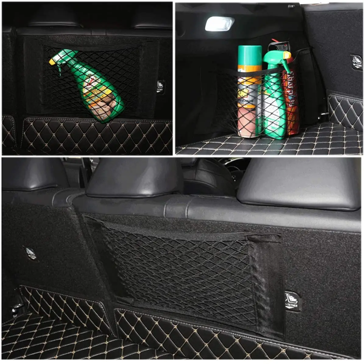【Multiple Sizes】Four different sizes of storage bags can be used for different products.The car net can be easily attached with straps. The strap is super tight and can still be removed without any damage.