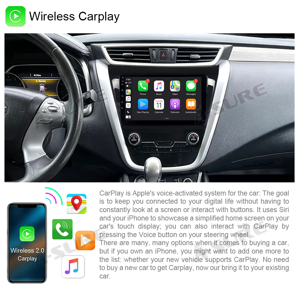 · Support both wireless and wired Apple Carplay & Android Auto (For iPhone and Android phones)