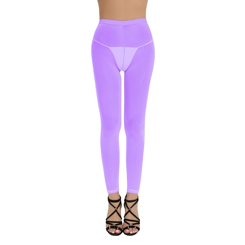 Elastic waistband, hollow out and open crotch design, full-footed, solid color