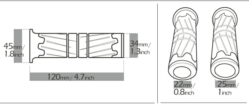 - Fit for Any motorcycle with 7/8" left grip and 1" right grip.