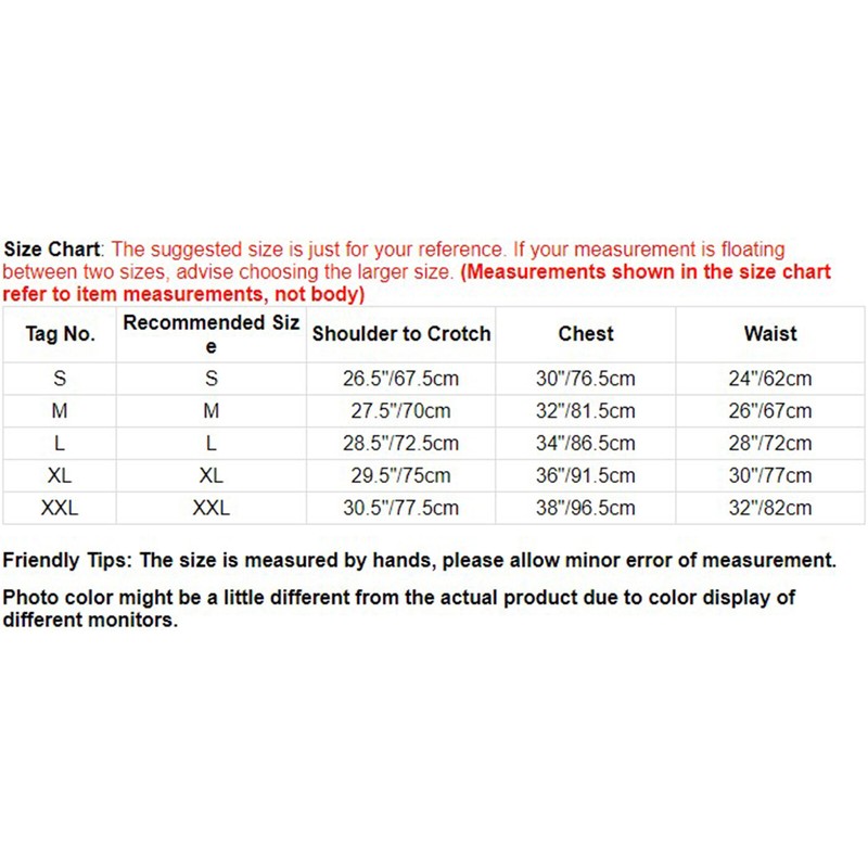 | Tag No. | Recommended Size | Shoulder to Crotch | Chest | Waist |