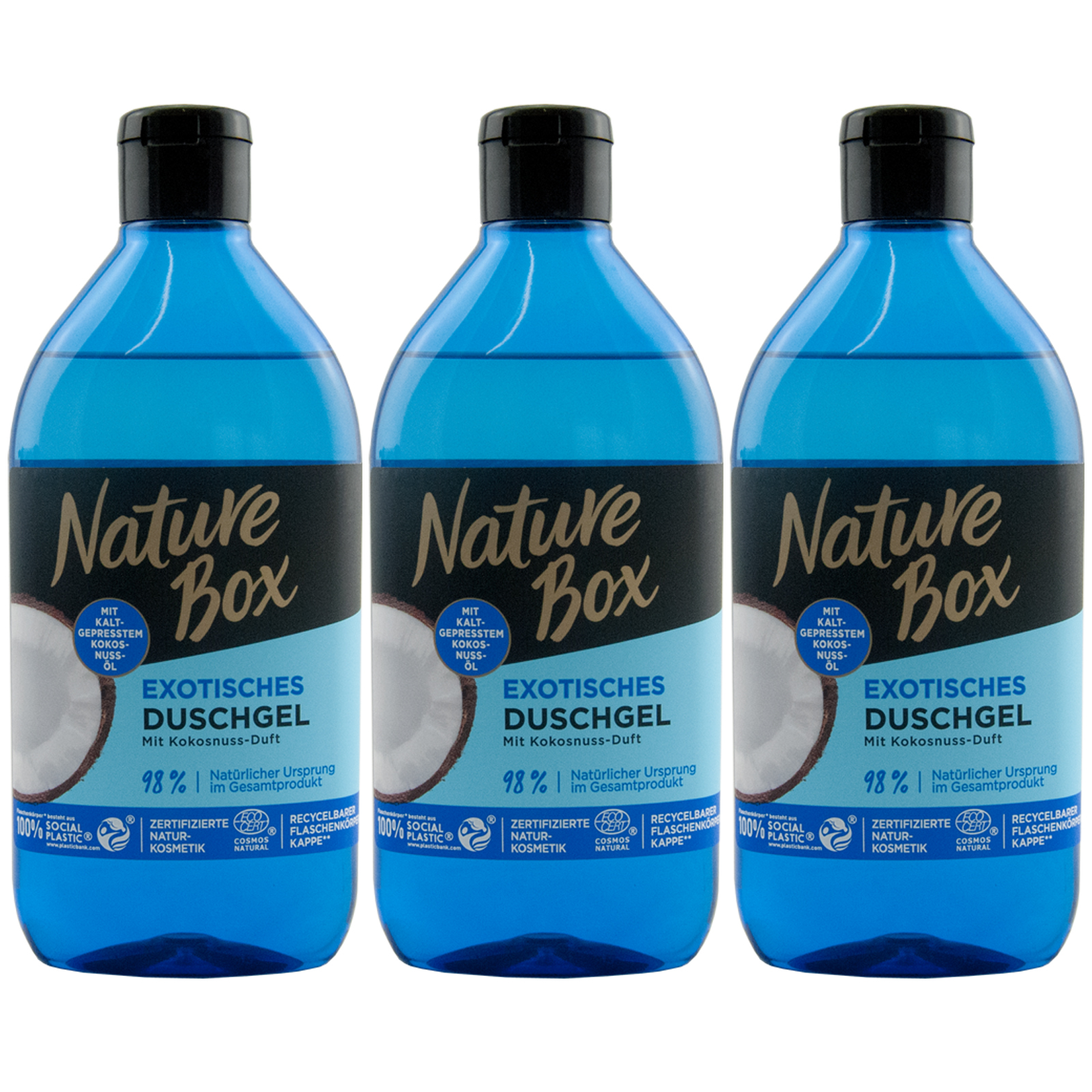 Nature Box Duschgel mit KOKOSNUSS ÖL 3 x 385ml Vegan frei von Parabenen