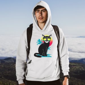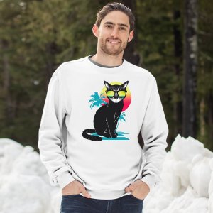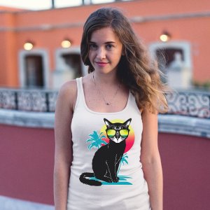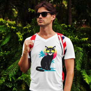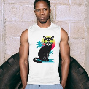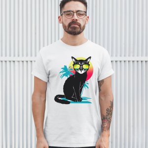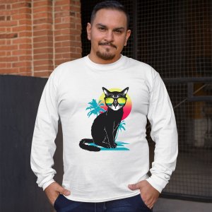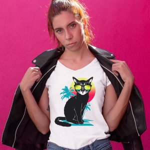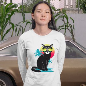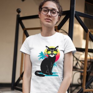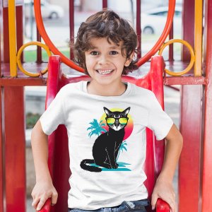 Cool Summer Cat Youth T-shirt Neon Kitty on a Beach Animal Lovers Kids