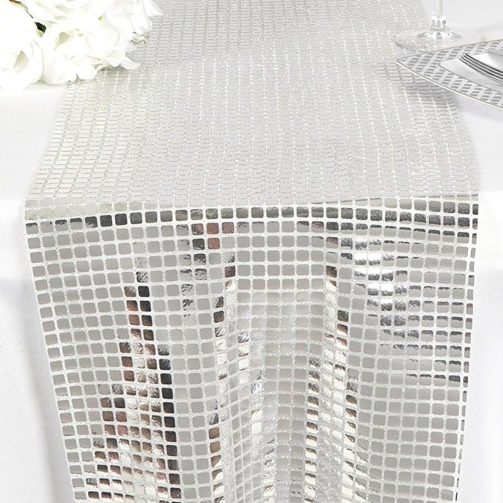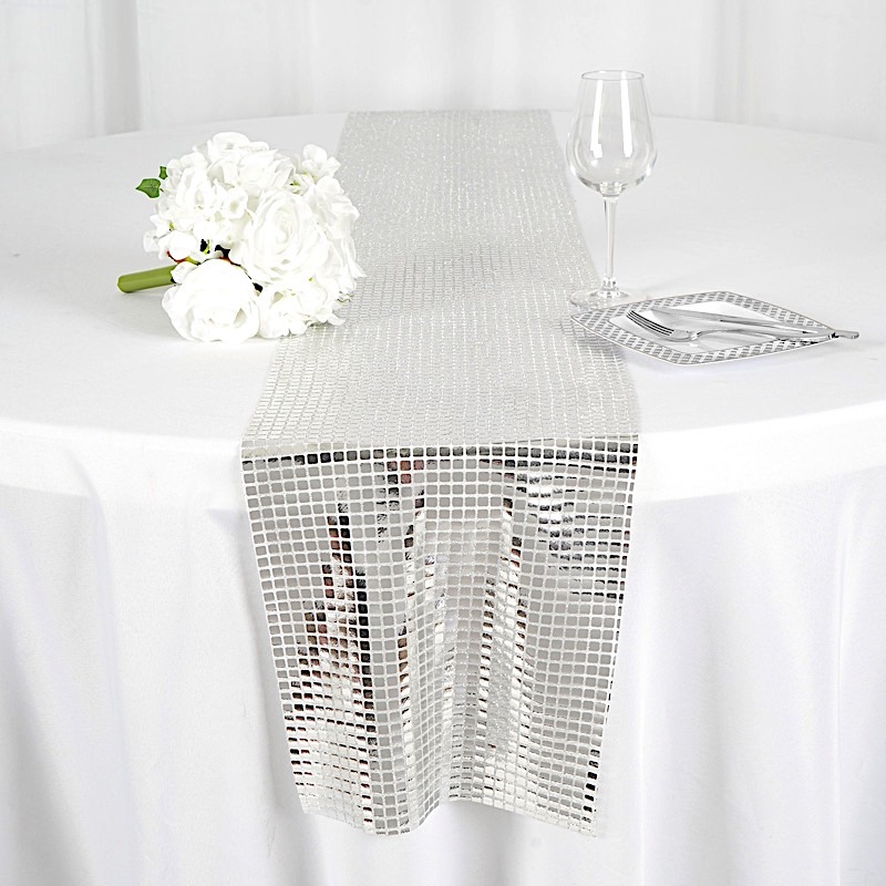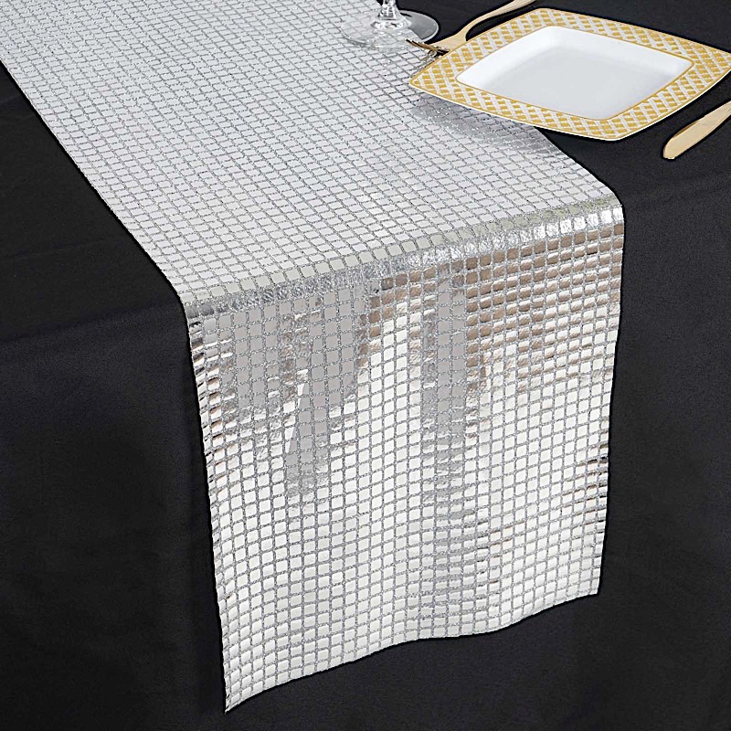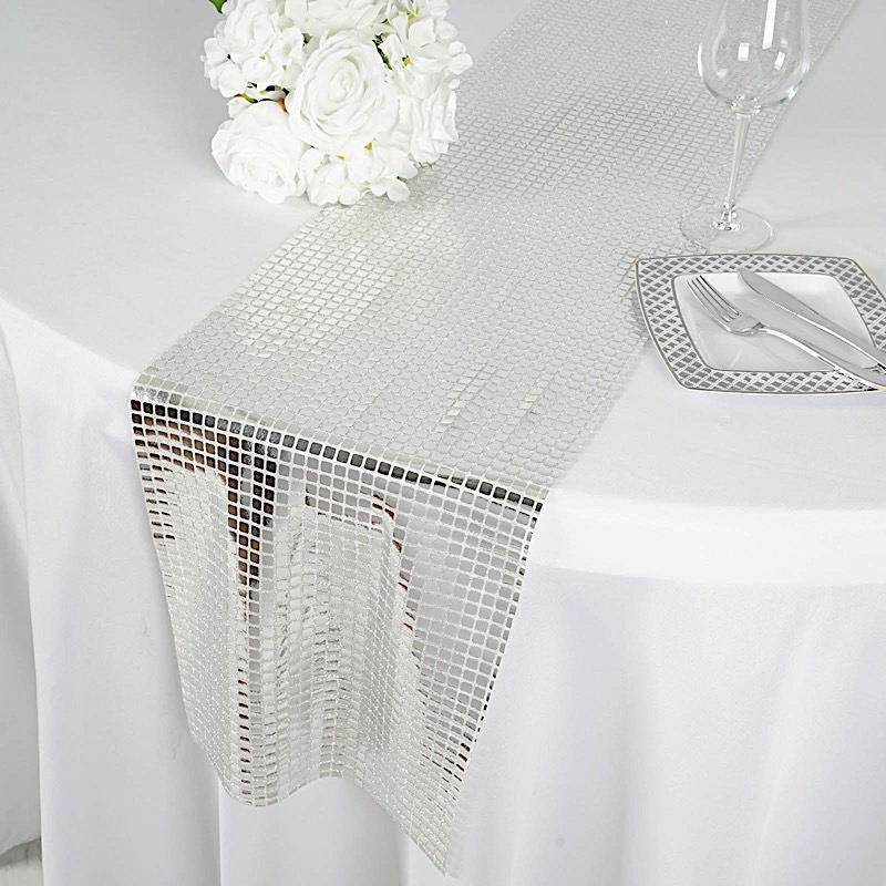 Silver Mirror Foil on Tulle 12x108" TABLE RUNNER.