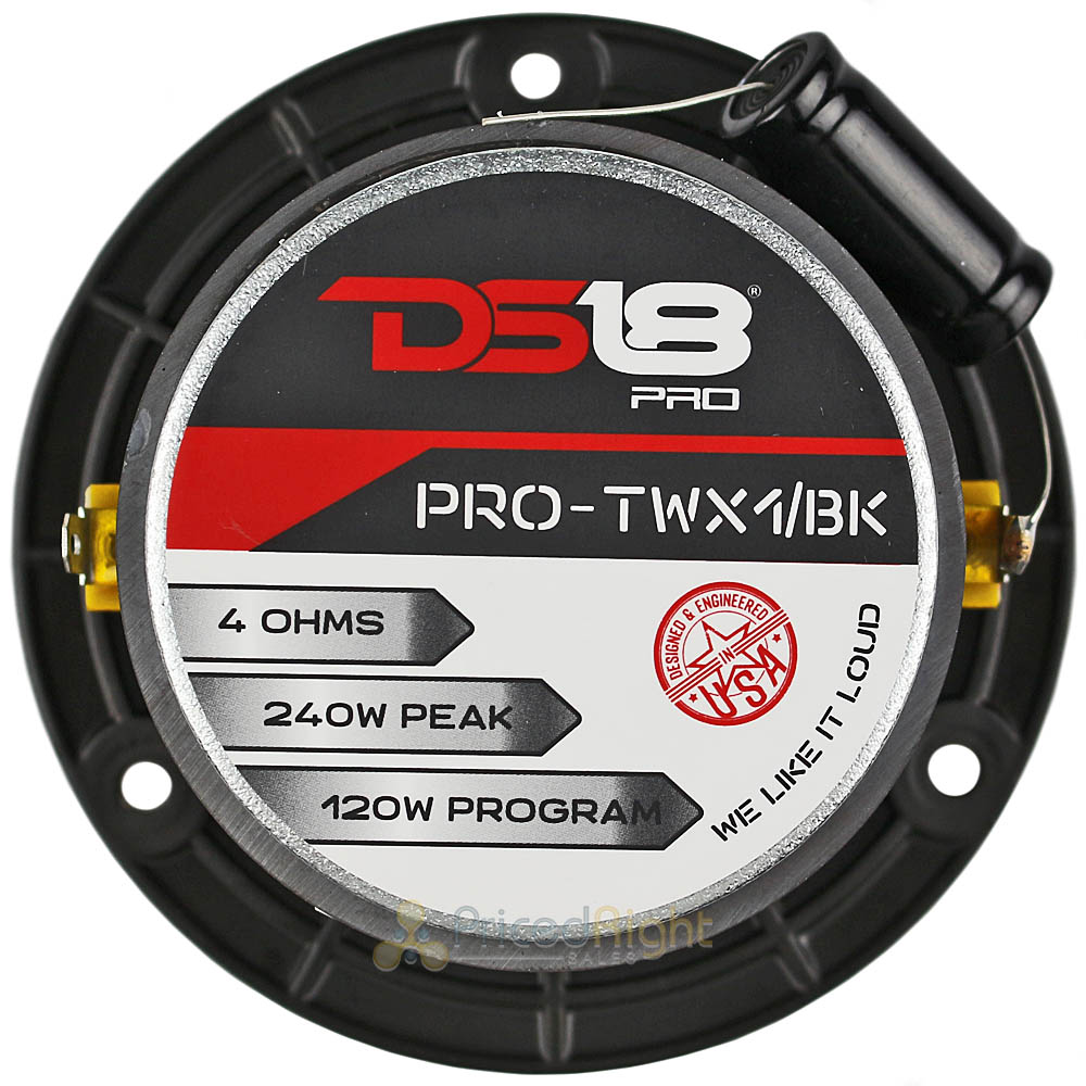 Engineered and Designed in the US, these DS18 PRO Tweeters are the top of the-line in the Pro Audio/Voceteo market. These deliver so much power that you'd think with one tweeter your whole sound system is concert ready. There are few tweeters that can compare to the sophistication and precision of these tweeters, especially in the Pro Audio/Voceteo World. With a 1" voice coil and a max power of 240 Watts, these tweeters are ready to pump out high-quality audio your way wherever you go.
