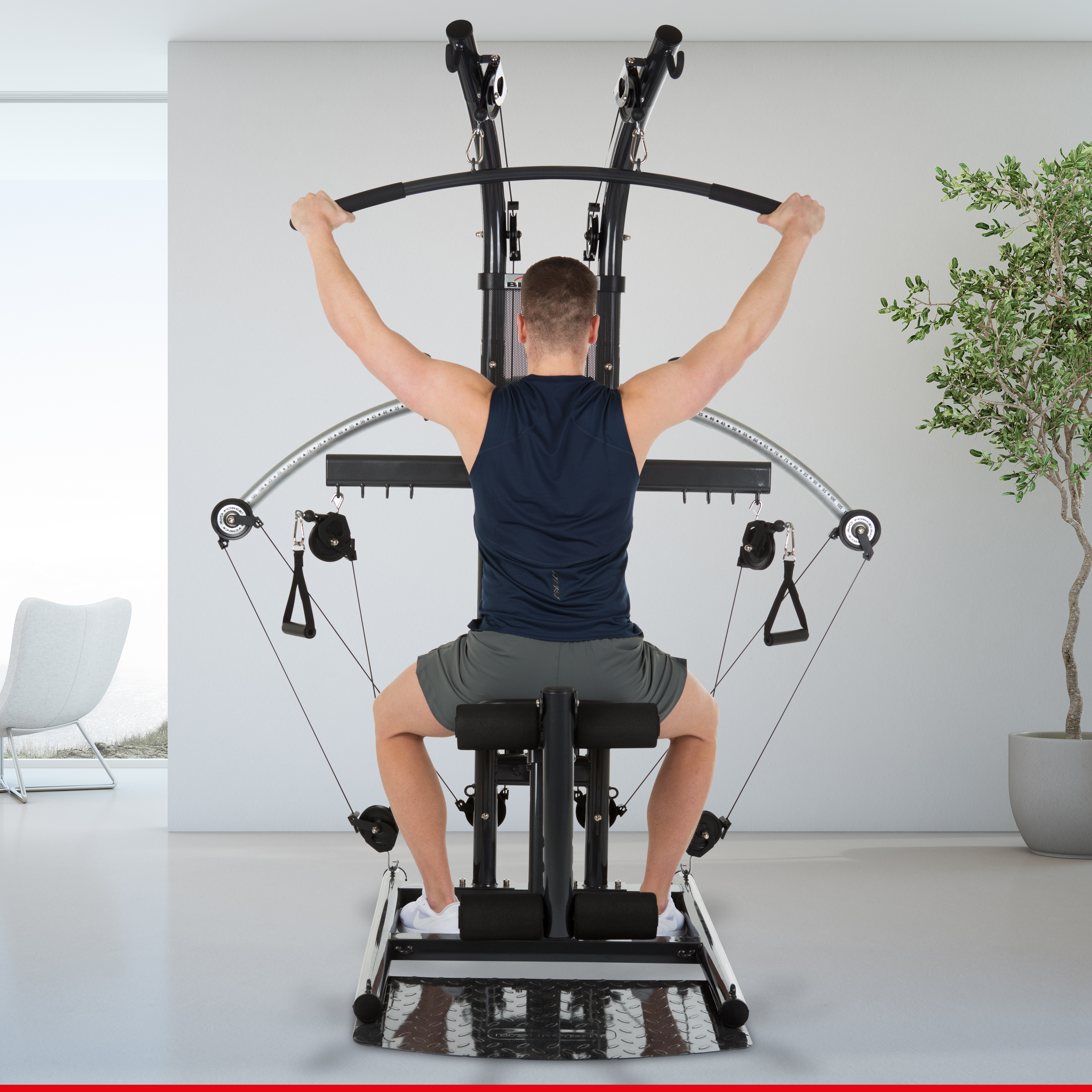 Durch die flexible Positionierung der Umlenkrollen & der übungsspezifischen Verwendung der Handgriffe und Fußschlaufen, ist jede denkbare Zug-Drück oder Rotationsbewegung möglich. Dadurch trainierst du deinen Oberkörper & deine Beinmuskulatur effektiv aus allen Winkeln. Die Bio Force verfügt über 4 nutzbare Zugpunkte auf Schulterhöhe zur Regulation der Bewegungsbreite bei Zug- & Drückübungen wie Rudern, Bankdrücken oder Butterflys.