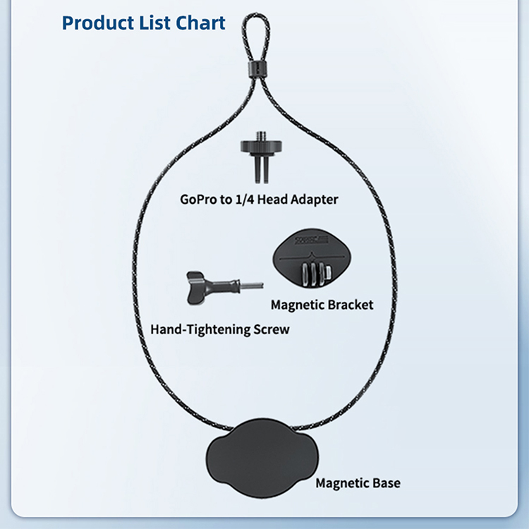 1x Chest Quick Release Magnetic Body + 1x Chest Quick Release Magnetic Bracket + 1x Camera Turn Quarter Head + 1x Hand Screw