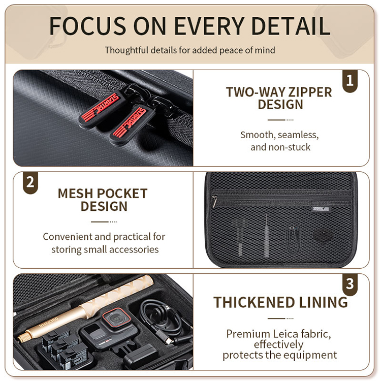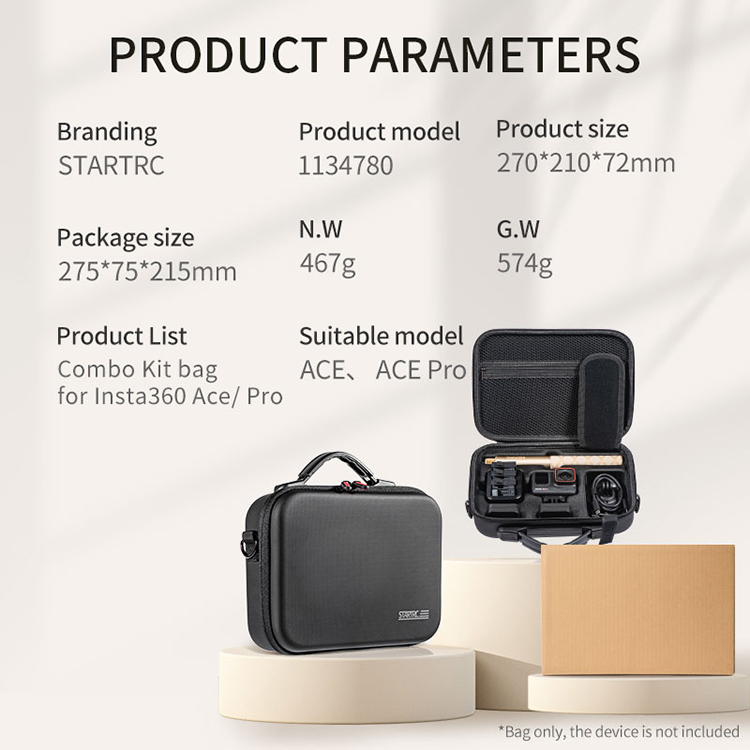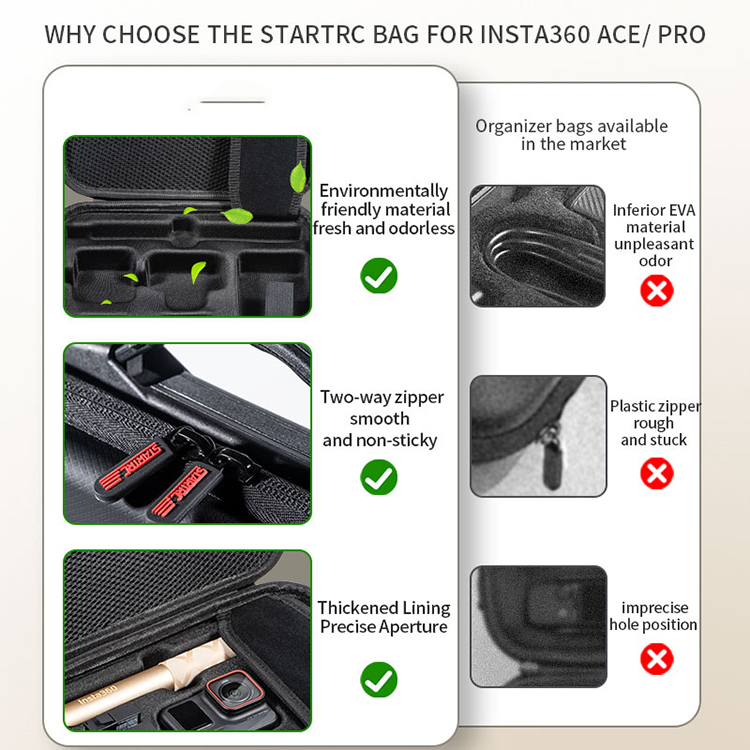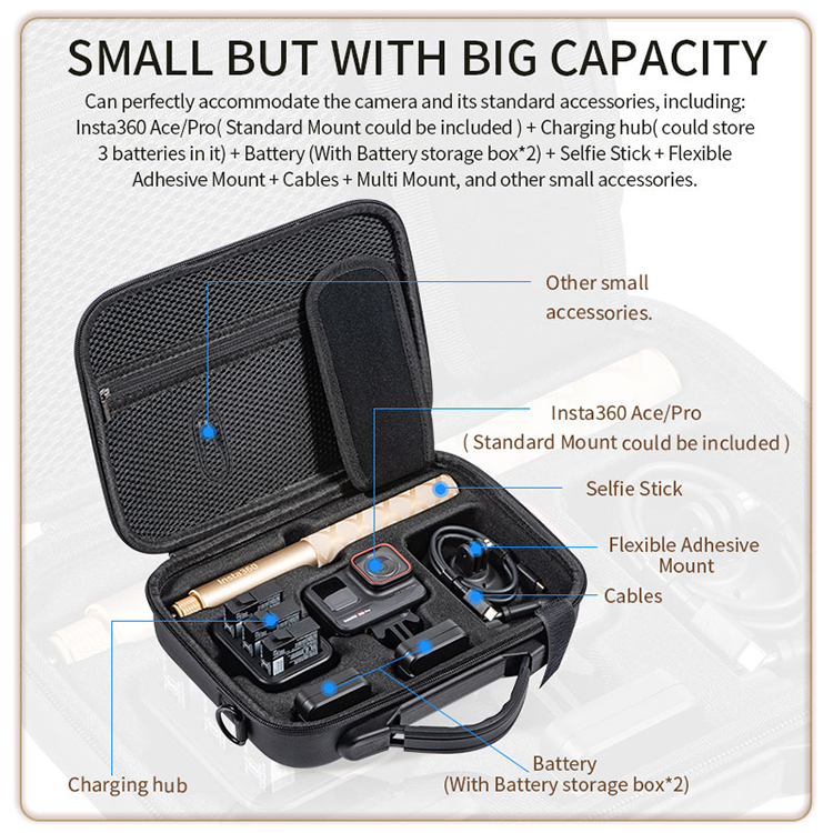 Specifically for Insta360 Ace Pro sports camera, precise molding, small size but large capacity, can perfectly store the camera + regular accessories