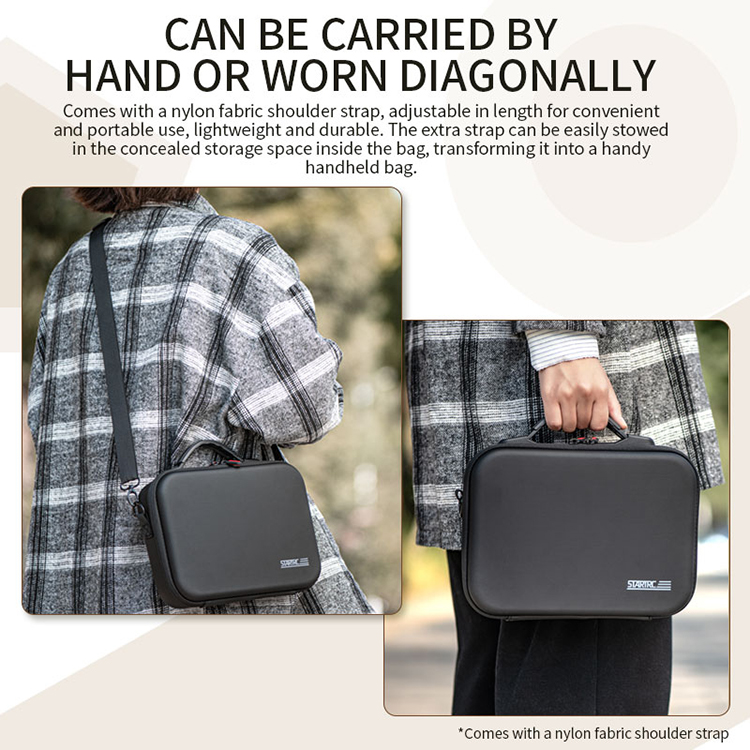Complimentary nylon fabric shoulder strap, adjustable length, easy to carry, lightweight and wear-resistant; you can also put the extra shoulder strap into the hidden storage space inside the bag, can be easily turned into a handbag