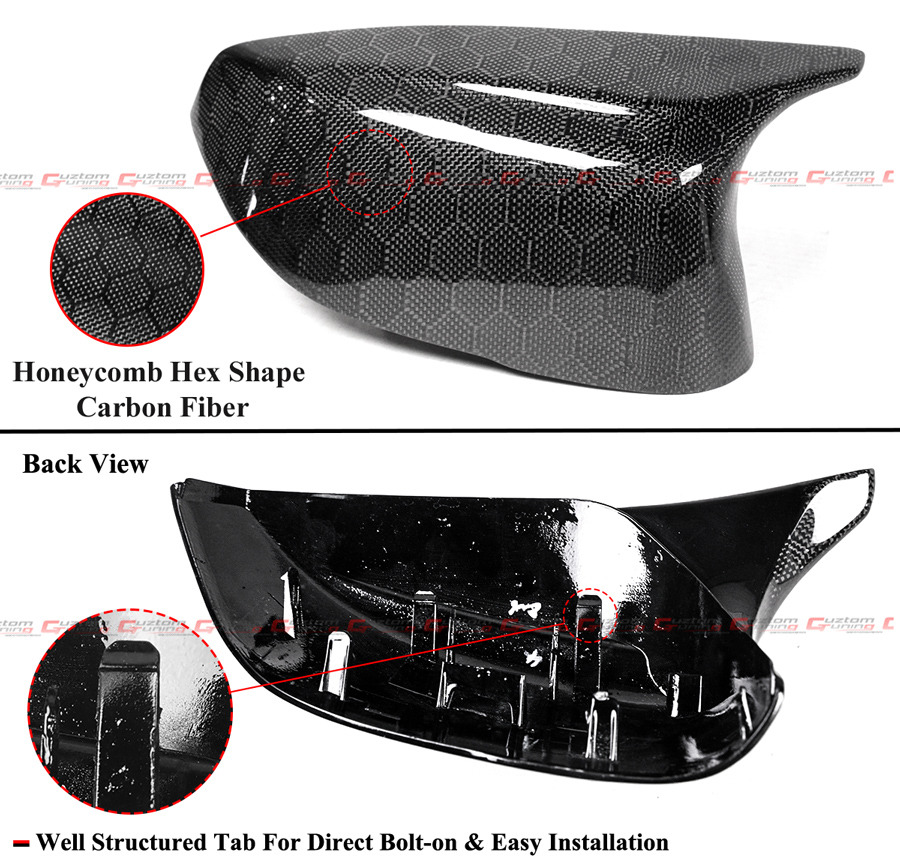 - Package Includes : 1 Pair of Real Honeycomb Carbon Fiber Replacement Side Mirror Cover Caps As Shown In Pictures