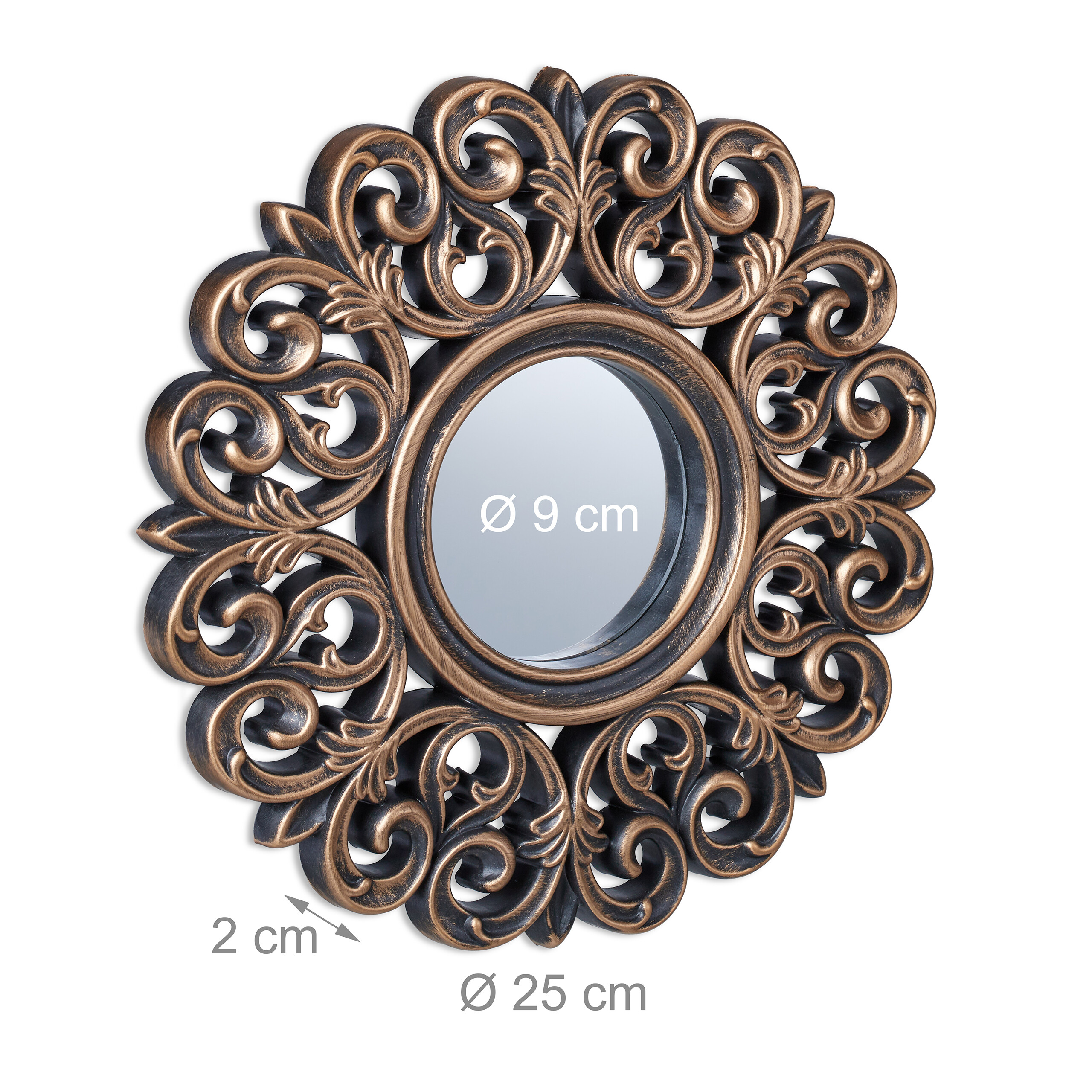 - Design: Der runde Zierspiegel im 3er Set überzeugt mit seiner barocken Optik in Bronze und Schwarz