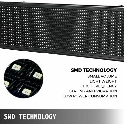 SMD light sourceOur new type of SMD light diodes are with special waterproof coating. New SMD light diodes save more power, with more light and more temperature and weather elements resistance . | Low powerOur new led sign is with low power consumption. In normal every day use led sign will use only 5 to 20 W. | WiFi and USB transferTransfer your text or project to led sign with WiFi or with USB flash drive. Supported computer system for WiFi and USB: - MS Widows based computers. Supported mobile phones : - Android mobile phones. - Apple iPhone mobile phones. |