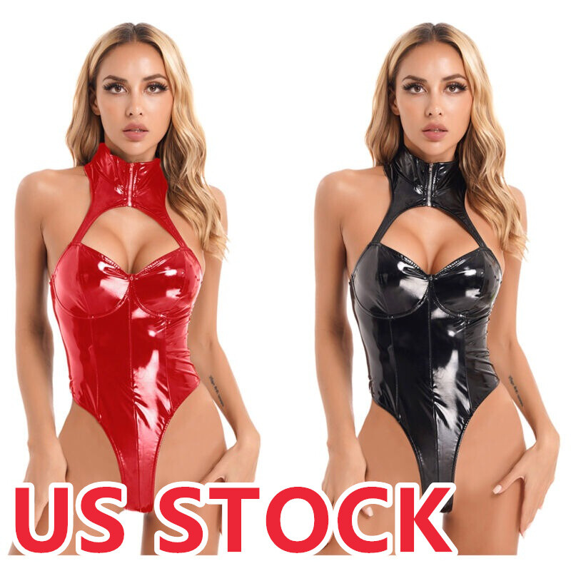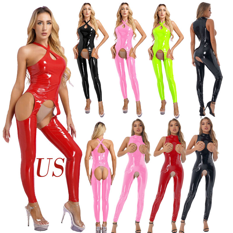 Women’s cutout patent leather jumpsuit highlights your charming curve and is a good choice to spice up your night life with your lover.