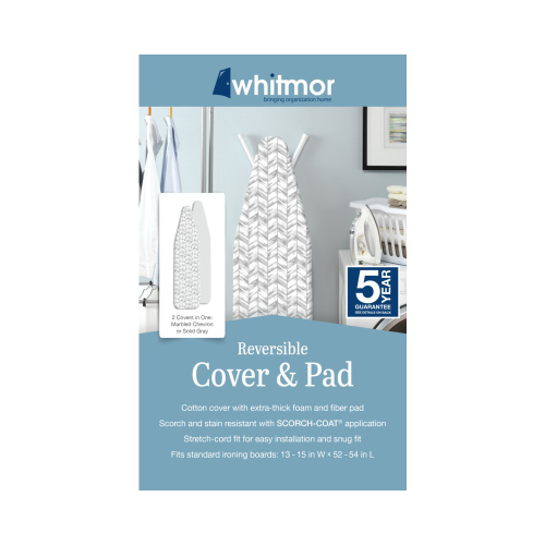 Whitmor Reversible Ironing Board Cover and Pad - Chevron.Cotton cover with EXTRA THICK, sewn-in foam, and fiber pad. Cotton cover with EXTRA THICK, sewn-in foam, and fiber pad. Patented UNIVERSAL FIT SYSTEM design. Unique dual nose pocket for easy installation.Fits standard board, 13-15 in W, 52-54 in L