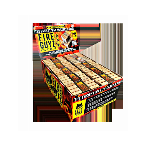 FIRE GUYZ Premium Fire Starter is a unique all-natural fire starter (Pinewood, a candle wick, and paraffin wax). No harmful chemicals, easy to light. Quickly ignites outdoor campfires, charcoal and outdoor BBQs, fireplaces, outdoor pizza ovens, and smokers. Start your fire while camping, hiking, ATV trips, snowmobiling, fishing, hunting, indoor fireplaces, or outdoor bonfires. Burns up to 20 minutes and only takes one to start a fire.