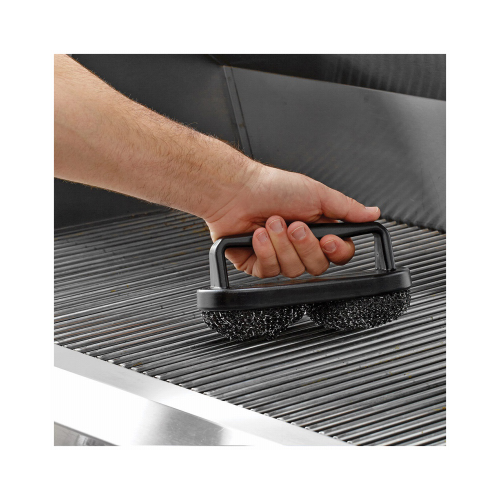 Double Headed Scrubber Grill Brush. Stainless Steel Scrubber Pads. Cleans quick and efficiently with No Bristles. Patented.