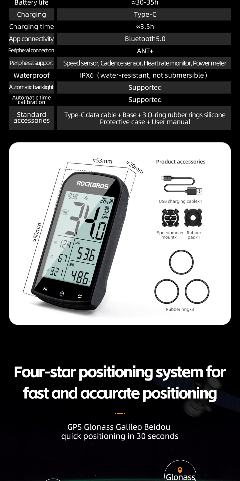 Supported Peripherals:Speed sensor / cadence sensor/heart rate monitor / power meter