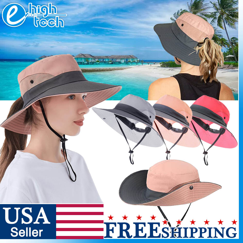 1/2Pcs Women Ponytail Sun Hat Summer Portable Wide Brim Travel Cap UV Protection