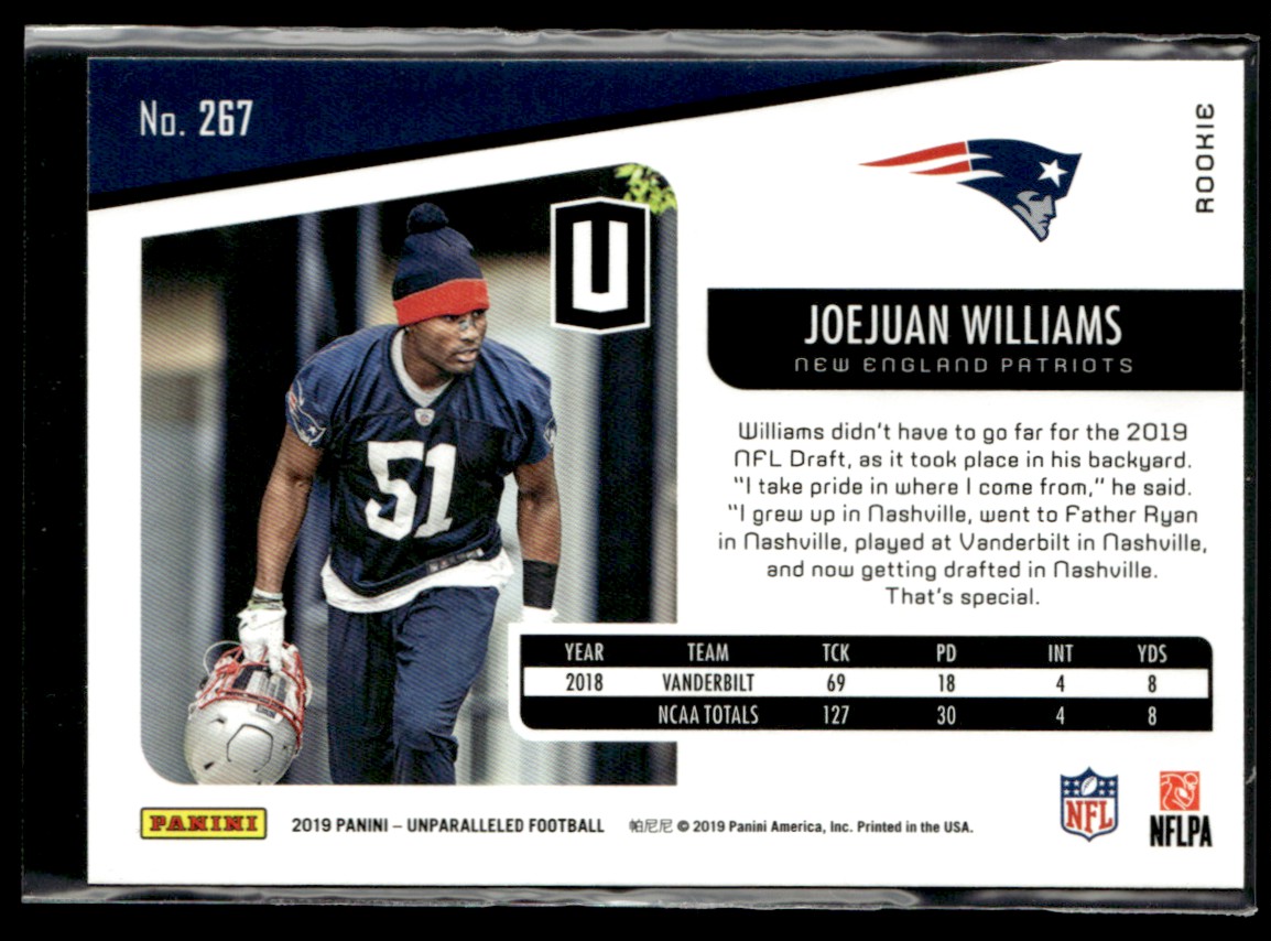 | 2019 Panini Unparalleled Joejuan Williams Rookie #267 | ||||||||||||||||||