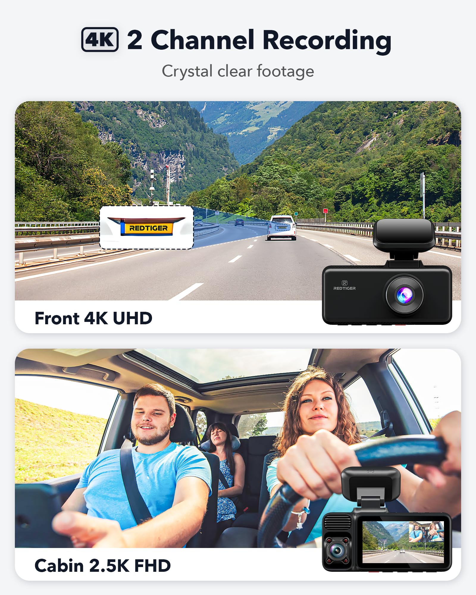 [Doppelaufnahme vorne und innen] F17-Autovideo Erfassen Sie die Straße in atemberaubender 4K-Auflösung bei 30 Bildern pro Sekunde und überwachen Sie den Innenraum mit außergewöhnlicher Klarheit von 2,5K bei 30 Bildern pro Sekunde. Verpassen Sie unterwegs keine Details und sorgen Sie für eine umfassende Sicht auf den Innenraum. Erleben Sie Videoaufzeichnungen in höchster Qualität für mehr Sicherheit.