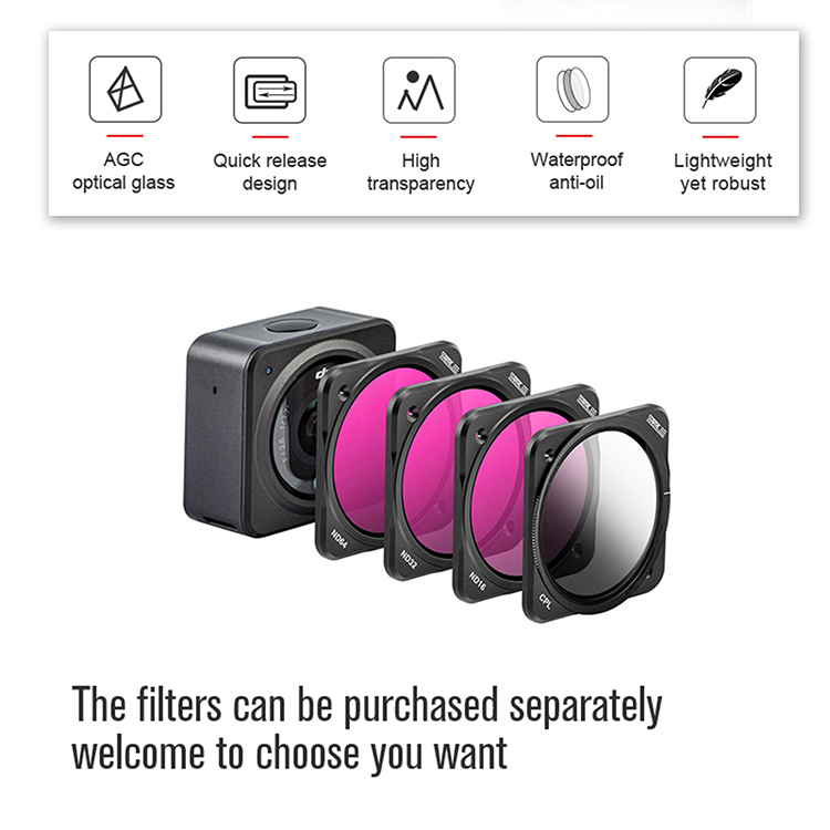 l Quantity (Optional): 4pcs/set (CPL/ND16/ND32/ND64), 6pcs/set (CPL/UV/ND8/ND16/ND32/ND64)