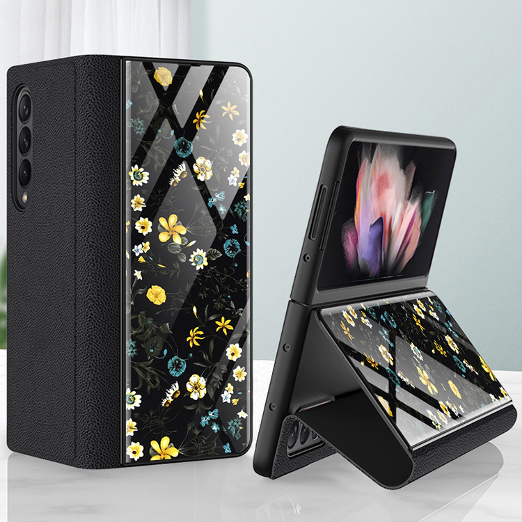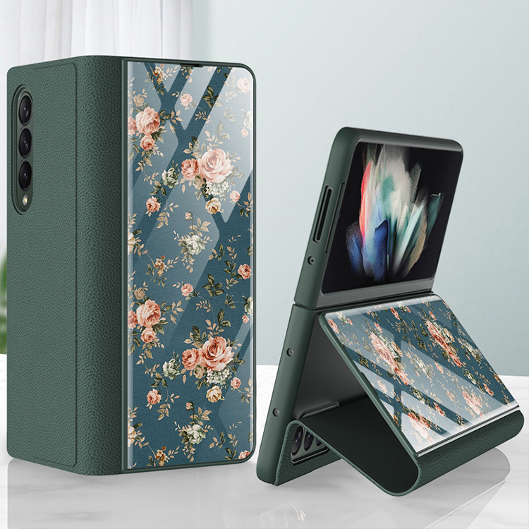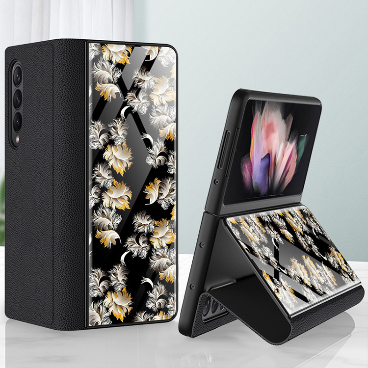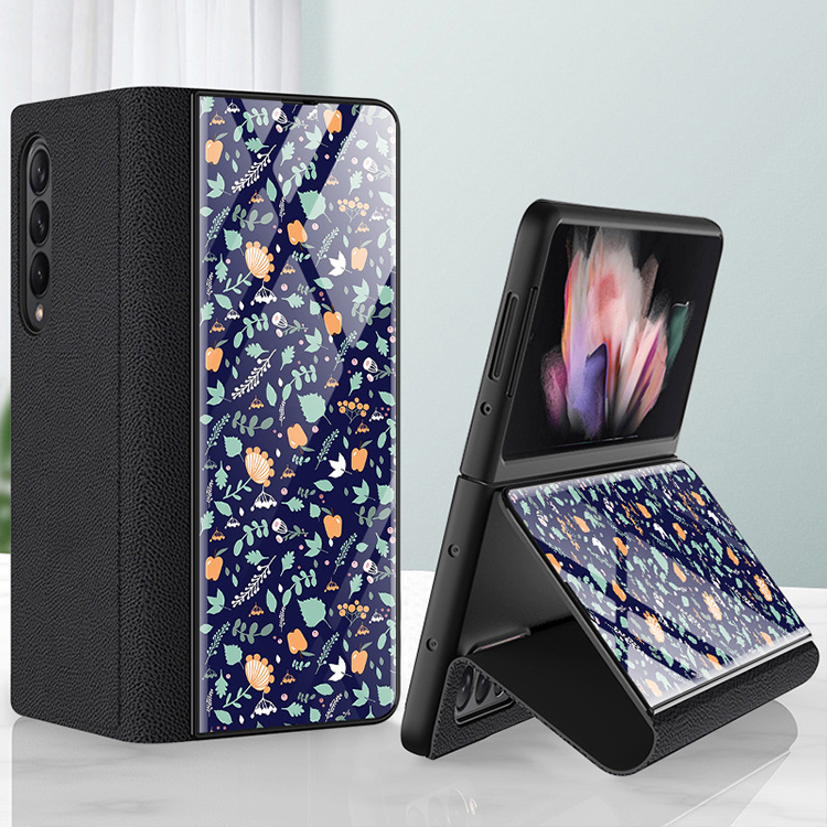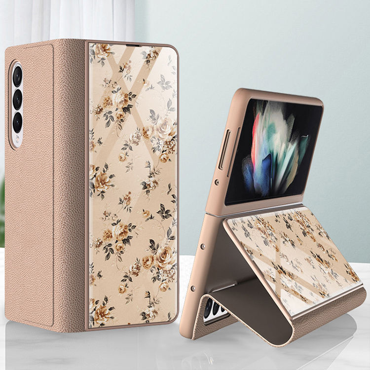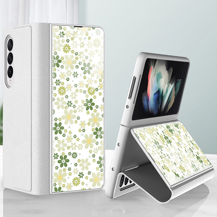 Mobile Phone Case Folding Screen Ultra-Thin Plain Leather Cover Anti-Fall Bracket Type Protective Shell for Samsung z Fold3 5G