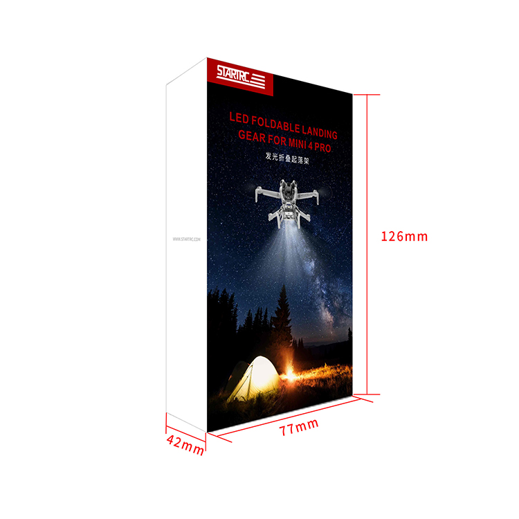 l The Lighted Kickstand is designed specifically for the DJI Mini 4 Pro drone. It perfectly fits the curved surface of DJI Mini 4 Pro body, with skeletonized and carved design, and won't block the indicator lights, fill light, bottom sensors, and heat dissipation holes. It helps you to have a better view of your surroundings when you are flying or taking off and landing in the dark night