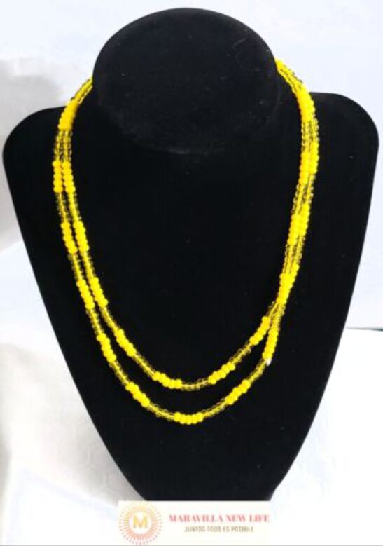 This Oshun Collar (ELEKE) is a unique piece of religious jewelry uséd by practitioners of the Ifa-Yoruba Lukumi religion. Handcrafted with organic materials, it is designed to invoke the blessings of the goddess Oshun and honor her spirit.