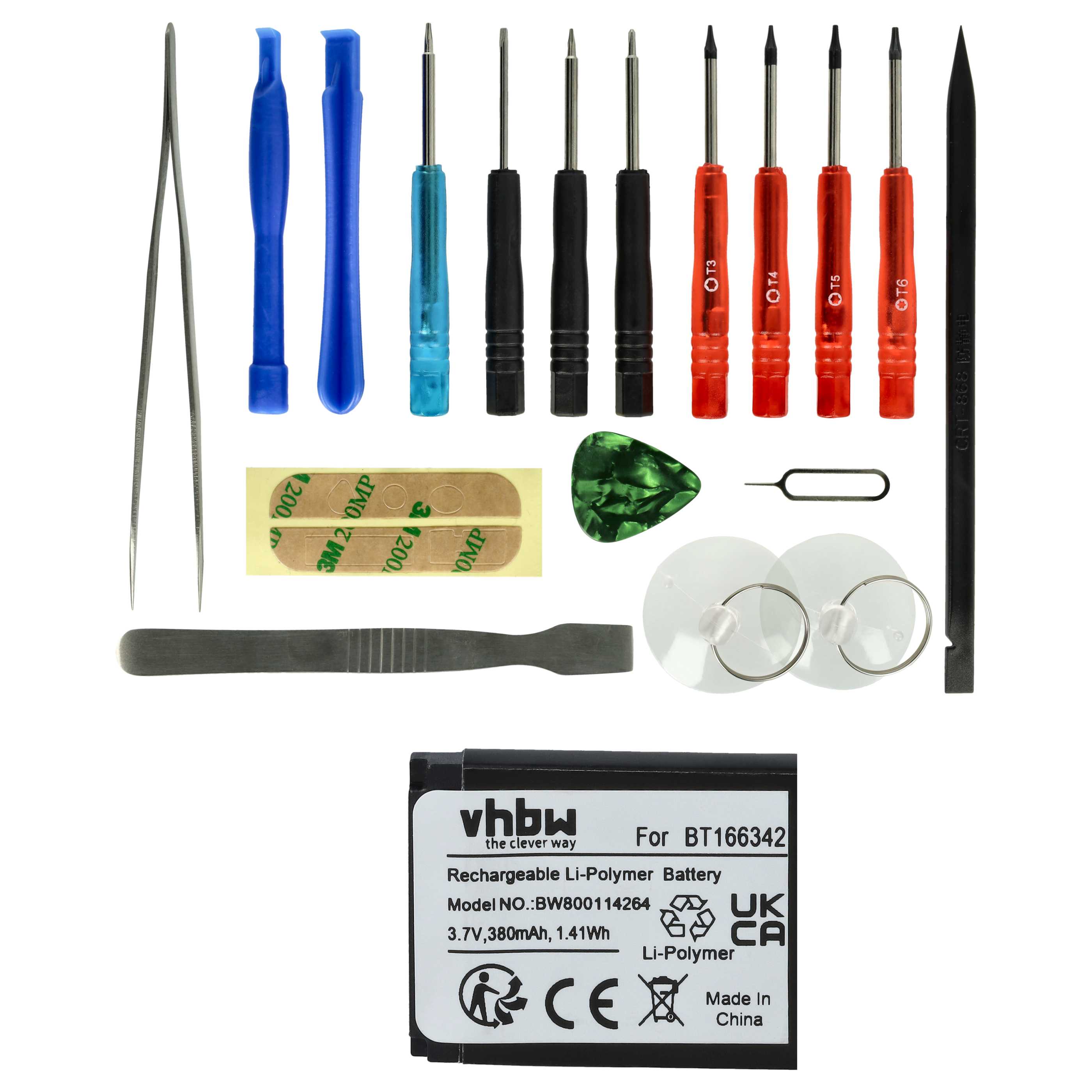 vhbw Batterie rechargeable pour smartwatch QN01, V8, QN-01, QW09, LQ-S1, HKX-S1, M9 smartwatch, bracelet fitness (Li-polymère, 380mAh, 3,7V) + outils