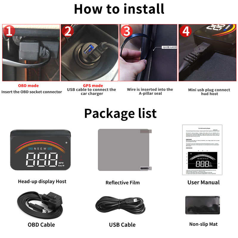 - Oil-electric hybrid and some diesel vehicles cannot use OBD2 HUD, GPS HUD are recommended.