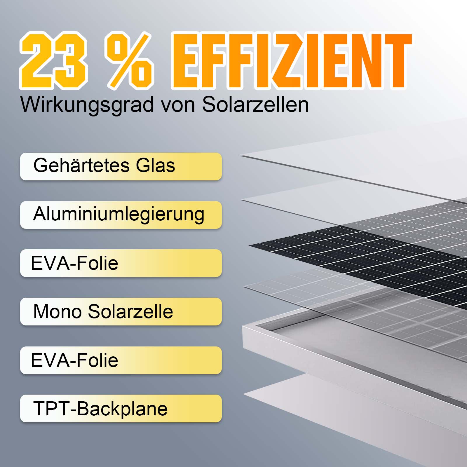 Aluminium, einem korrosionsbeständigen Aluminiumrahmen und einer Hartglasbeschichtung, die das Panel vor
