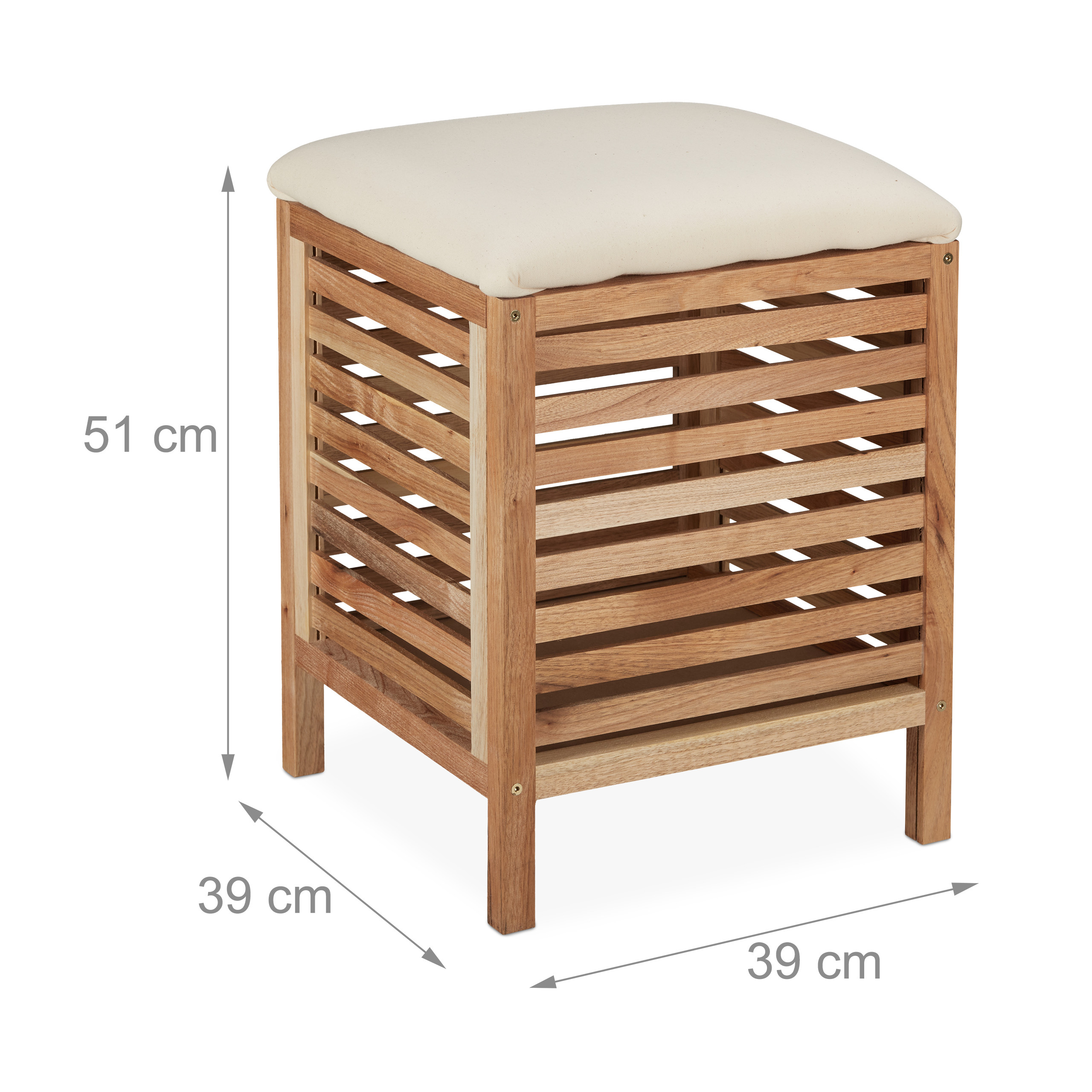 - Siège : corbeille à linge élégant en bois avec assise matelassée pour la salle de bain ou la chambre