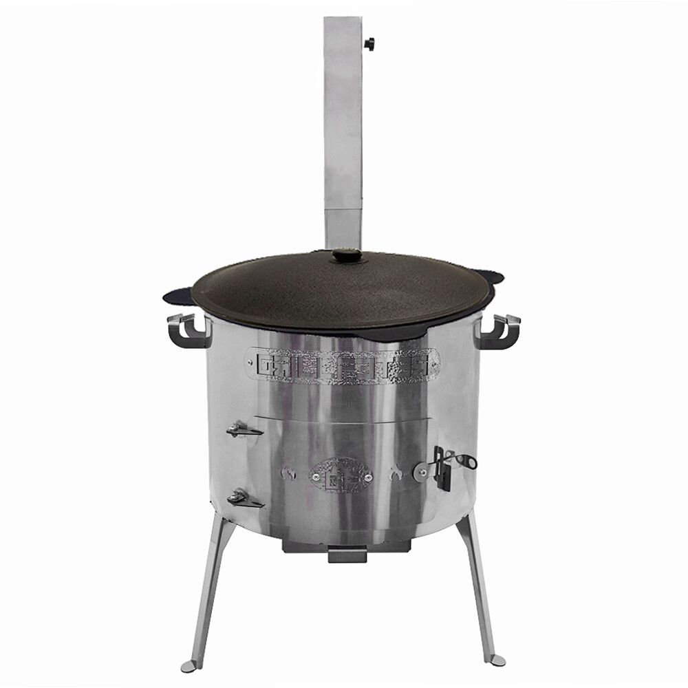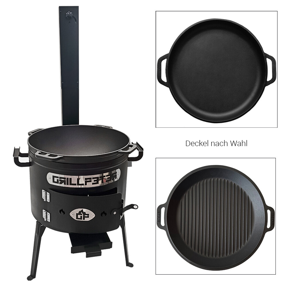 Utschak Set Asamat mit Schornstein Kazan 15 Liter Gusseisen mit Grilldeckel
