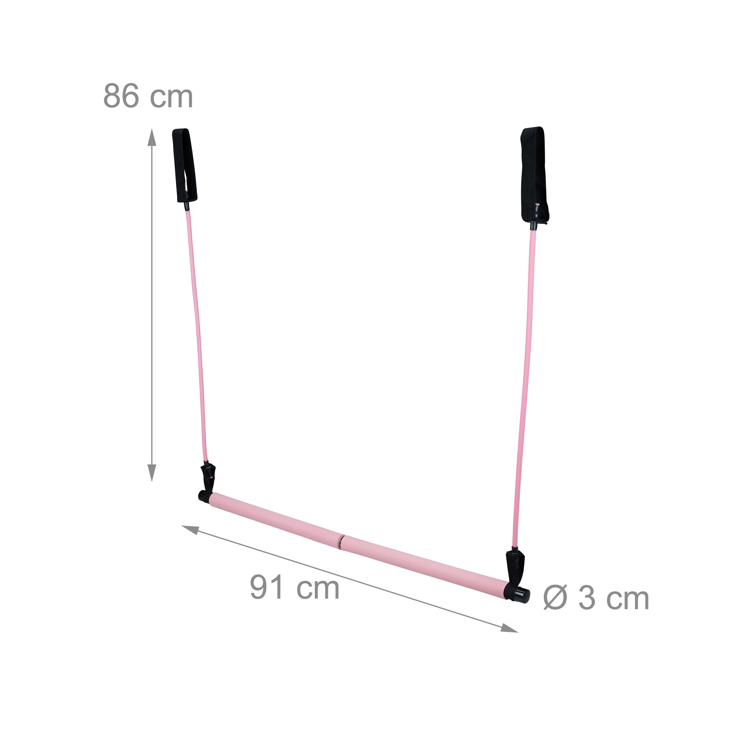 Asta per yoga in dettaglio- Dimensioni asta H x D: 91 x 3 cm ca.- Lunghezza fasce elastiche con cordino per piede: 86 cm ca.- Peso: 0,6 kg ca.- Materiale: acciaio, gommapiuma EVA, gomma- Colore: rosa, nero