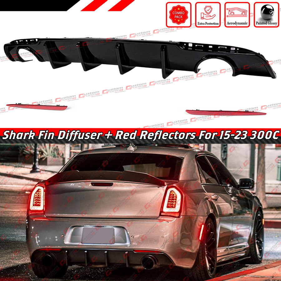 - Package Includes : 1 x Gloss Black Rear Bumper Diffuser + Red Reflectors Shown In the Pictures