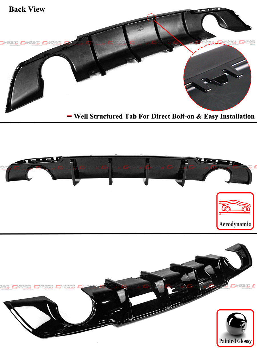 - Modification/Change of Exhaust Tips is Required Since This Diffuser Is Designed With 2 Round Exhaust Opening. However It Comes With A Way More Aggressive and Sporty Shark Fins Vortex Aerodynamic Design. This Is Direct Replacement Diffuser.
