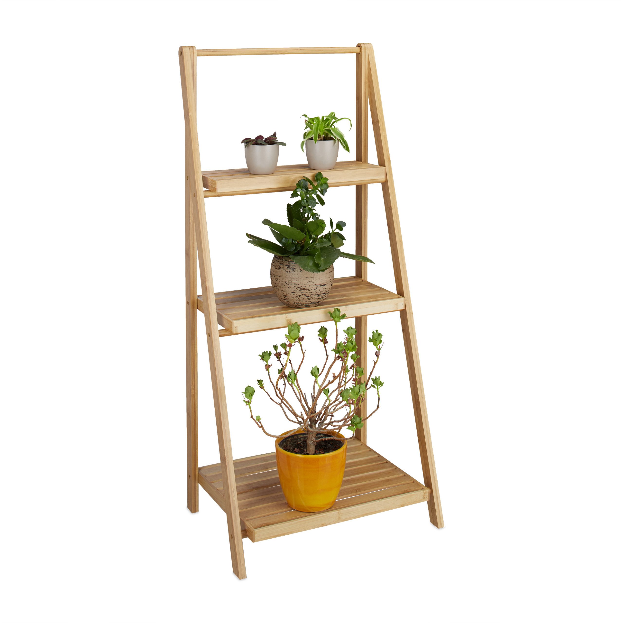 Etagère à plantes pliable léger étagère à fleurs étagère en bambou 3 niveaux