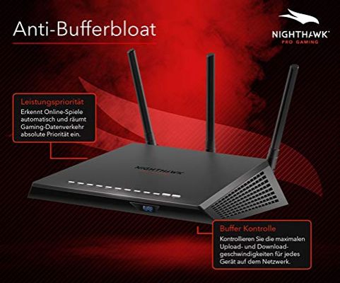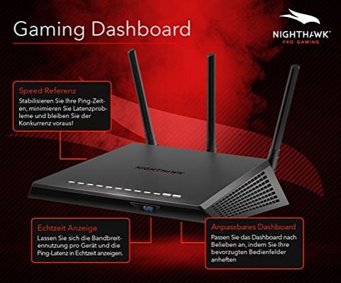 Gaming WLAN Router XR300: No Lags, Low Ping, Buffer Control, Geo-Filter - alles was man zum perfekten Zocken braucht, für PC oder Konsole geeignetWLAN Router für Gaming und Streaming - 1,75 Gbit/s für flüssiges Streamen von 4K/UHD Filmen, Downloads oder Online-Gaming, ohne integriertes ModemGaming-Dashboard (Software powered by Netduma) - anpassbare Ansicht von Echtzeit-Bandbreitenauslastung nach Gerät, Latenz, Location, Ping etc.Bandbreiten-Management: Überprüfen Sie Geräte mit schwankender Bandbreite, setzen sie Prioritäten und beheben die UrsachenGeo-Filter: Entfernung zu Gaming-Servern oder anderen Spielern limitieren, um Verzögerungen zu minimierenQuality of Service: Priorisieren Sie Gaming-Geräte weisen Sie Bandbreite je nach Gerät zu und Beamforming für zuverlässigere VerbindungenLeistungsstark und schnell: MU-MIMO für gleichzeitiges Streaming und 1,0 GHz Dual Core Prozessor